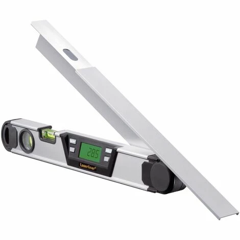 Mesureur d’angle électronique numérique avec une équerre extensible intégrée pour mesurer les angles dans les endroits difficiles d’accés. Deux grands afficheurs LCD rétroéclairés, la face avant est inclinée et ainsi lisible de haut, un deuxième afficheur au dos pour effectuer des mesures des deux côtés. Les deux afficheurs sont orientables par pression de la touche (Flip-Display). Par l’intermédiaire des touches de fonctions, vous pouvez rechercher le dernier angle que vous avez mesuré. Il peut être utilisé partout où il vous faut une mesure précise de l’angle de 0 à 220°. Que ce soit pour mesurer les inclinaisons du toit, l’encastrement de meubles ou fenêtres dans des arêtes ou coins.