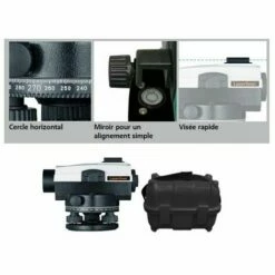 Le Quadrum M350 S est un Laser rotatif entièrement automatique pour lalignement précis des lignes horizontales et verticales. La zone de réception laser dun rayon de 350 mètres est extrêmement grande. La télécommande permet de commander agréablement à distance de tous les côtés les fonctions jusquà une distance maximale de 40 mètres. Le mode inclinaison manuel permet de travailler sur des pentes. Il se produit une mise hors tension automatique en cas dinteractions externes. Le trépied à manivelle robuste à adaptateur fileté de 5/8 pouces dispose dune crémaillère (97 cm) extrêmement longue réglable sans jeu qui peut être fixée et qui permet une grande plage de réglage. Les pieds en acier et les chaînes en acier robustes sont dautres avantages du produit. Le kit est complété par le jalon darpenteur télescopique bien lisible. Il est composé dun profilé daluminium solide et peut être utilisé également dans des conditions extrêmes. La hauteur maximale est de 5 mètres et la hauteur minimale est de 1,22 mètre.